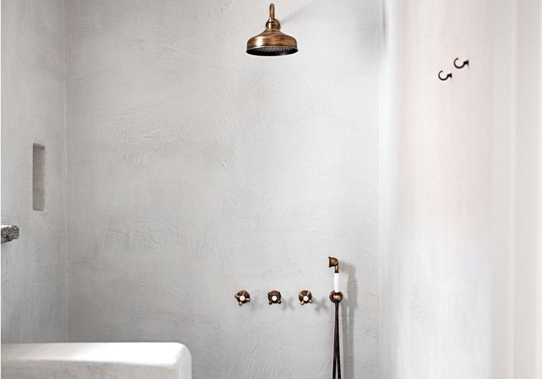 This entire bathroom is coated in plaster – no, that’s not a typo. Modern water sealing products make it possible to use what you want in your bathroom to get the look you want, even materials that are normally highly water-absorbent.
