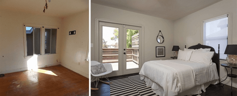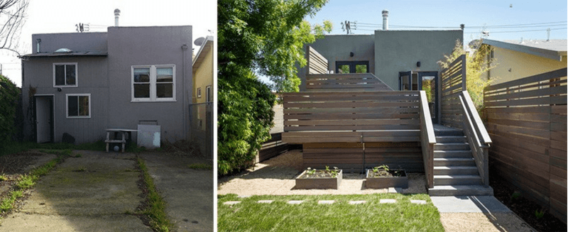1: G. This plain house and neglected, unused yard were transformed with French doors opening out on to a deck screened for privacy from the neighbours. The result: The perfect place to relax or entertain. These kinds of renovations are a great return on investment because they add so much value and lifestyle to your home – much more than they cost!