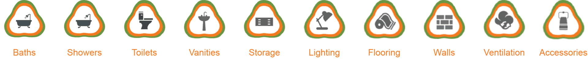 Click on the icons below to see examples of each type of product in finished bathrooms: