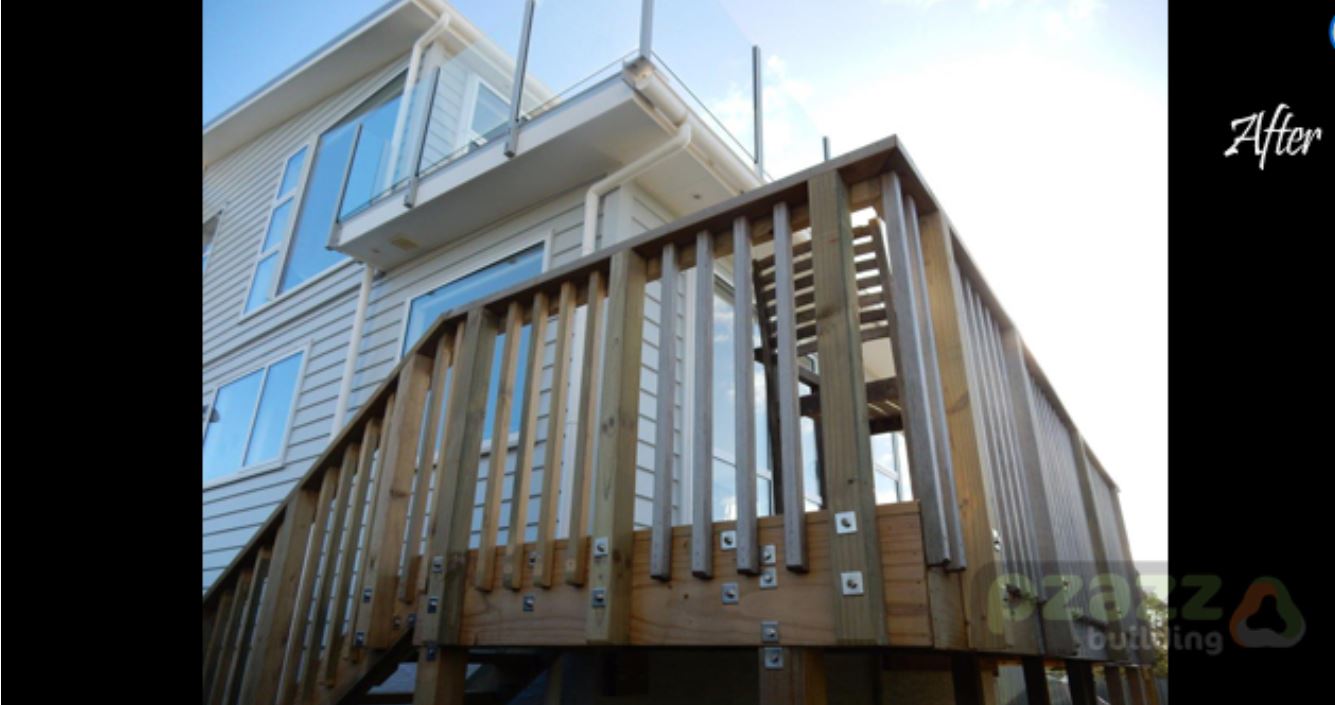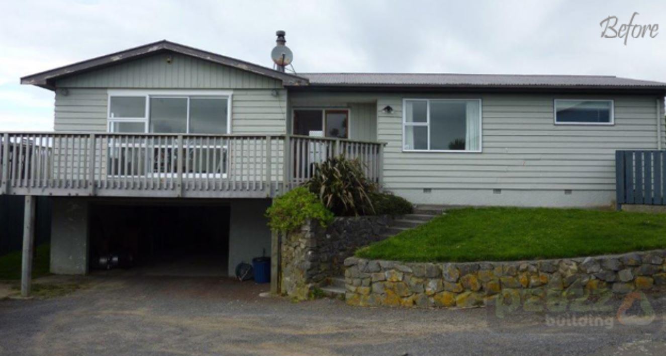 From the front door right around to the back corner across the south end is new. As for the interior, internal stairs were added, going from the basement garage up two levels into a very nice seating area with views up into the Hutt Valley and right around to Wellington city.